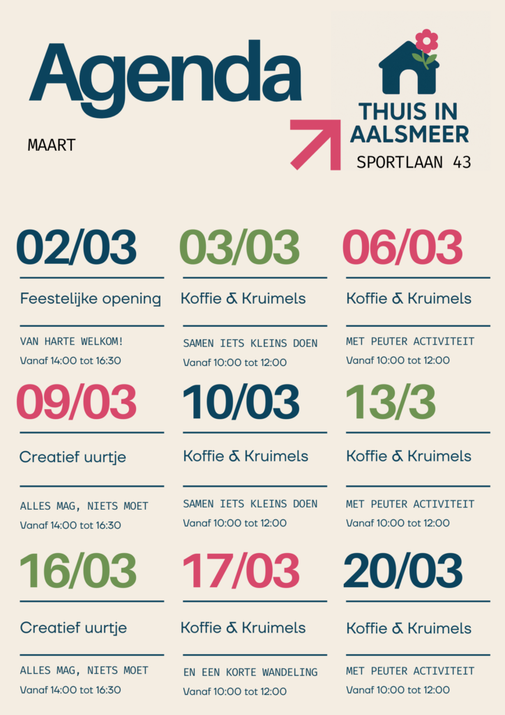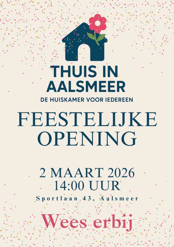 Thuis in Aalsmeer zal een warme huiskamer voor het dorp zijn: een plek waar iedereen zich welkom voelt.